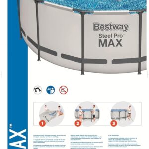 Neben dem Bestway Steel Pro Max Pool und der Filterpumpe umfasst das Set eine passende Abdeckung zum Schutz vor Verschmutzungen sowie eine Sicherheitsleiter. Diese Ausstattung sorgt für einen unkomplizierten Start in die Badesaison und bietet ein hohes Maß an Stabilität und Komfort.