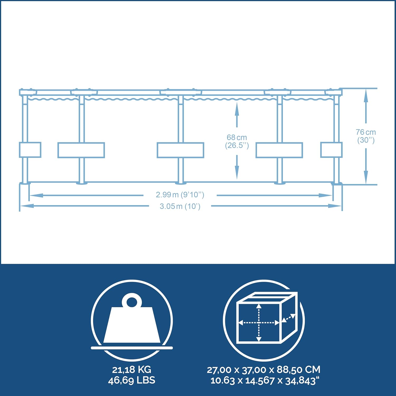 • Platzsparendes Design: Mit einem Durchmesser von 305 cm findet der Pool auch in mittelgroßen Gärten Platz und lässt sich am Saisonende kompakt verstauen.