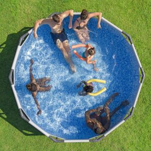 Der Bestway Steel Pro Max™ zeichnet sich durch seine Stabilität aus. Das Herzstück bildet das FrameLink System™, ein Stecksystem, das den Aufbau ohne zusätzliches Werkzeug ermöglicht. Aus unserer Erfahrung ist der Aufbau alleine in unter 30 Minuten machbar, zu zweit geht es jedoch deutlich komfortabler und sicherer von der Hand. Die Stahlrahmen sind pulverbeschichtet, um sie gegen Feuchtigkeit und Chlorwasser resistent zu machen.