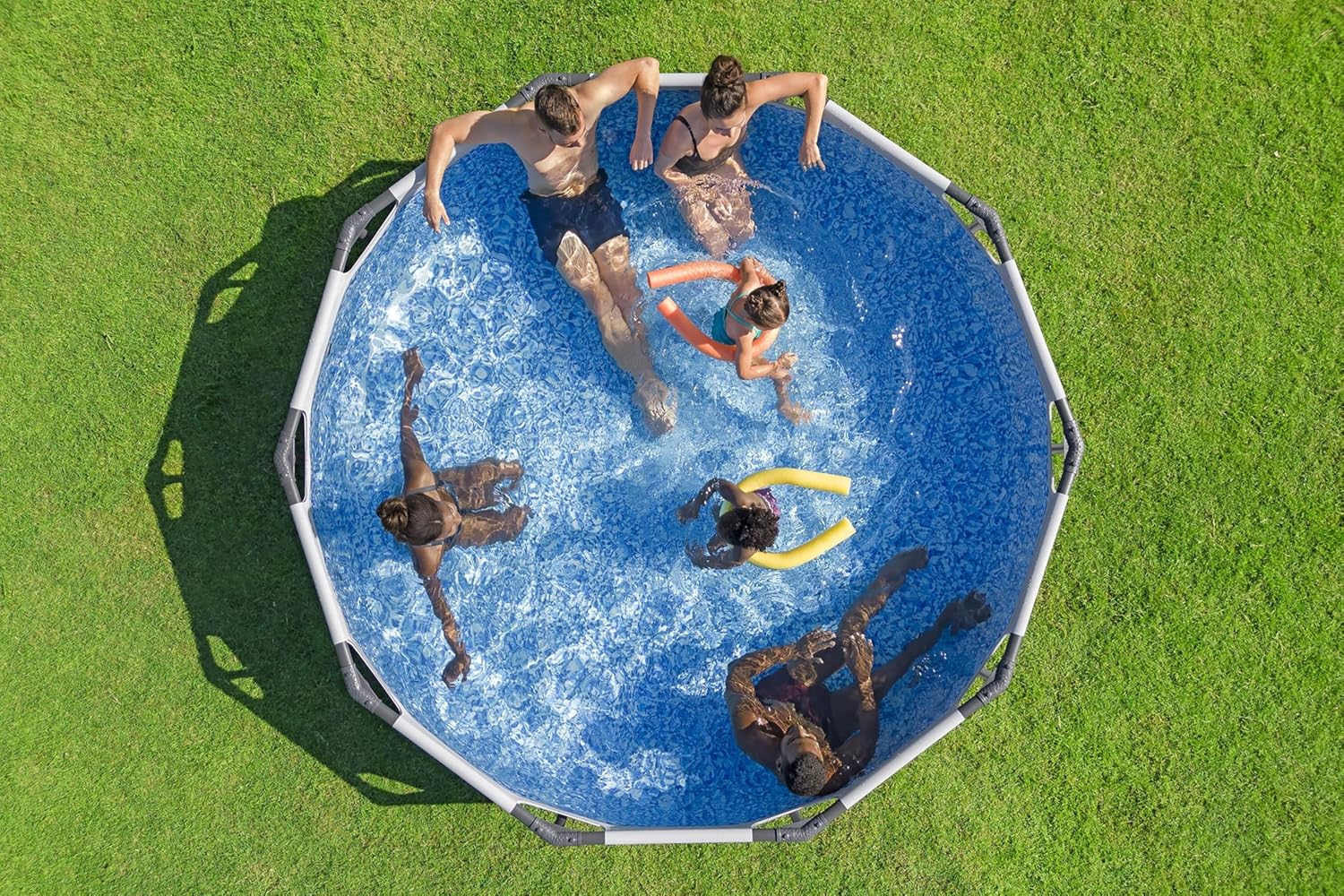 • Langlebige Poolfolie: Das dreilagige DuraPlus™-Material ist reißfest und hält intensiver Beanspruchung sowie UV-Strahlung stand.