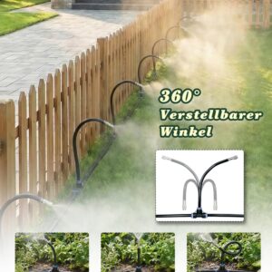 - Flexible Leitungsführung: Das biegbare Nebelrohr lässt sich präzise in Form bringen, um schwer zugängliche Pflanzenreihen oder verwinkelte Gartenbereiche exakt zu erreichen.