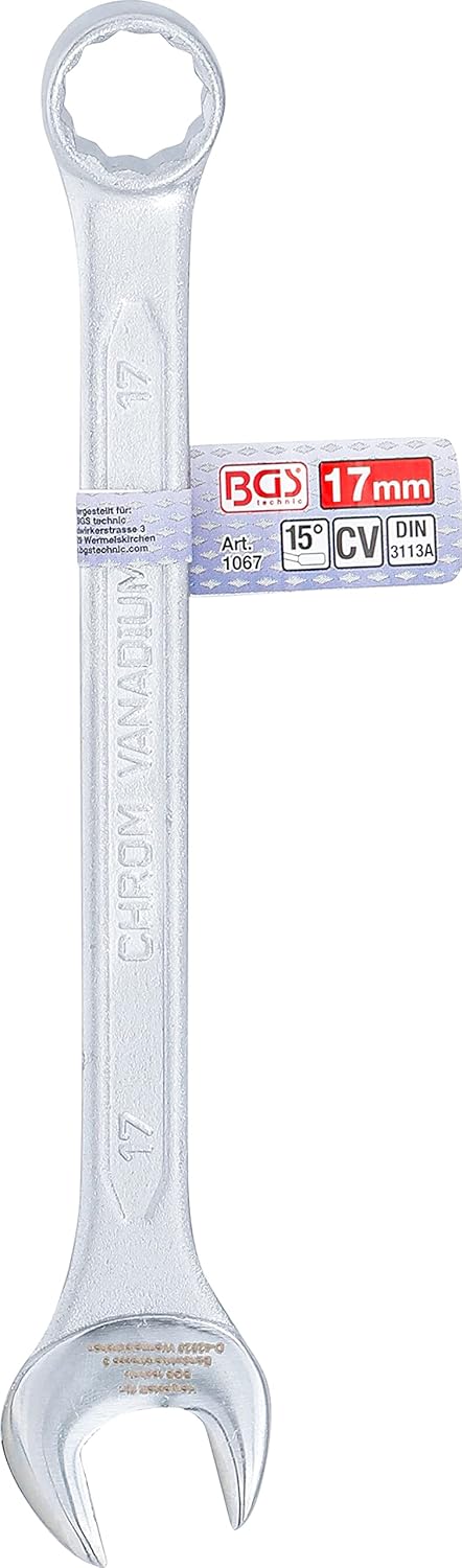Ja, der BGS 1067 Maul-Ringschlüssel mit einer Schlüsselweite von 17 mm ist nach der Norm DIN 3113 gefertigt. Dies garantiert eine standardisierte Passform und Qualität, die den Anforderungen in Handwerk und Industrie gerecht wird.