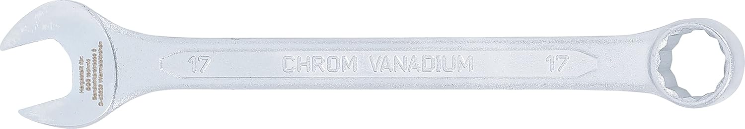 Dieser Schlüssel zeichnet sich durch seine Fertigung aus widerstandsfähigem Chrom-Vanadium-Stahl aus, der eine hohe Stabilität gewährleistet. Da er der DIN 3113 entspricht, erfüllt er zudem wichtige Industrienormen für Maul-Ringschlüssel.