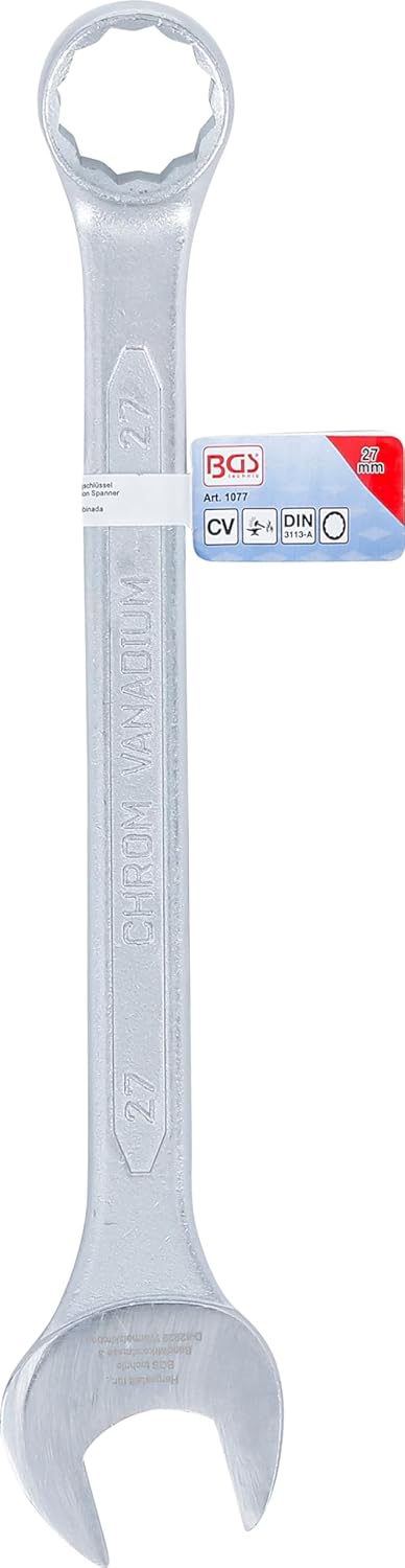 Der BGS 1077 Maul-Ringschlüssel ist der Standard bei Arbeiten an Fahrwerken, größeren Maschinenbauteilen und im Bereich Landtechnik. Wenn du an Nutzfahrzeugen, schweren Anhängern oder größeren Stahlkonstruktionen schraubst, ist die 27 mm Weite absolut essenziell.