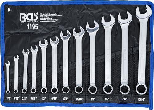 BGS 1195 | Maul-Ringschlüssel-Satz | 12-tlg. | Zollgrößen | SW 1/4" - 15/16" | inkl. Tetron-Rolltasche | Gabelringschlüssel BGS 1195 | Maul-Ringschlüssel-Satz | 12-tlg. | Zollgrößen | SW 1/4" - 15/16" | inkl. Tetron-Rolltasche | Gabelringschlüssel