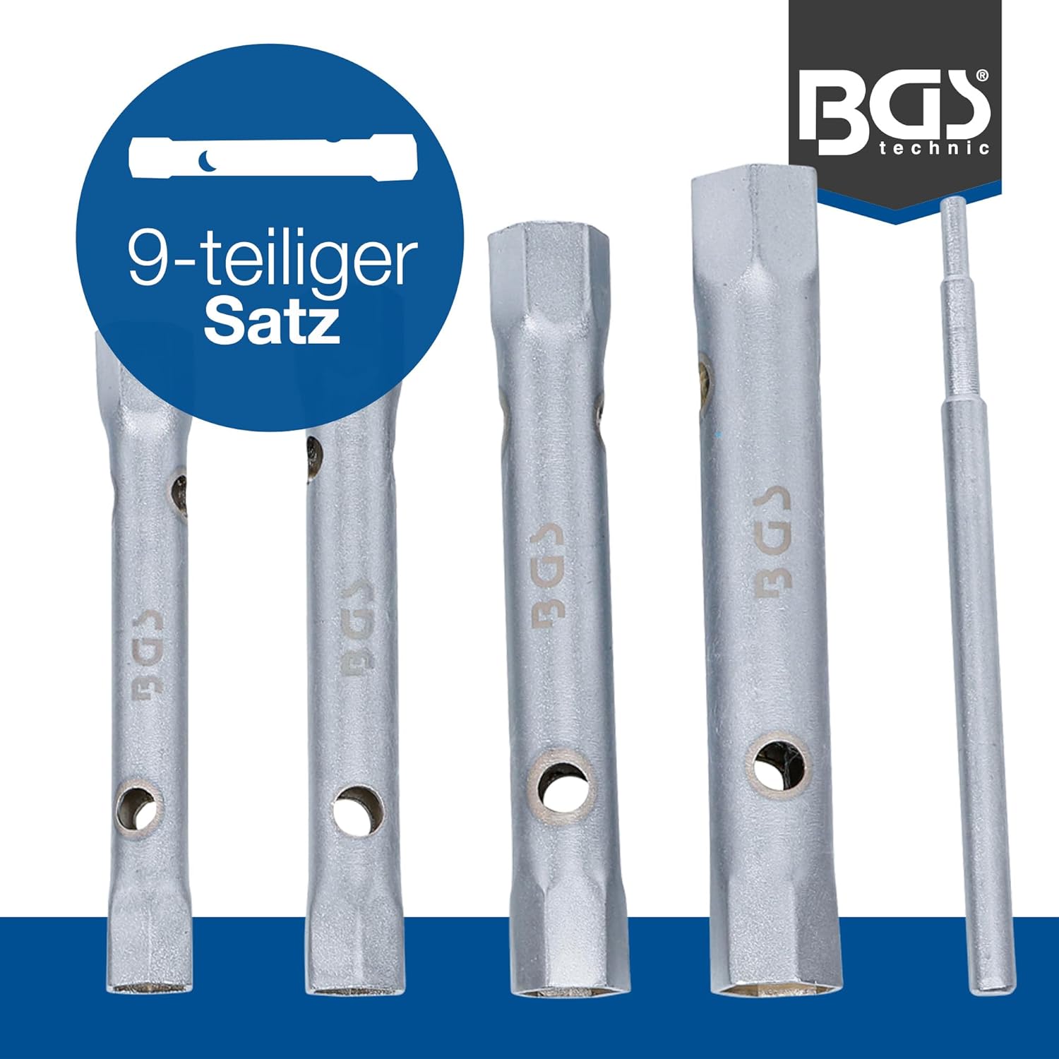 Dieser Rohrsteckschlüssel-Satz von BGS ist ein absolutes Pflichtprogramm für jeden, der regelmäßig an schwer zugänglichen Schraubstellen arbeitet. Mit den neun gängigen Schlüsselweiten von 6 bis 22 mm deckst du das Gros an Verschraubungen im Kfz-Bereich oder bei der Montage ab, bei denen eine normale Nuss nicht tief genug reicht.