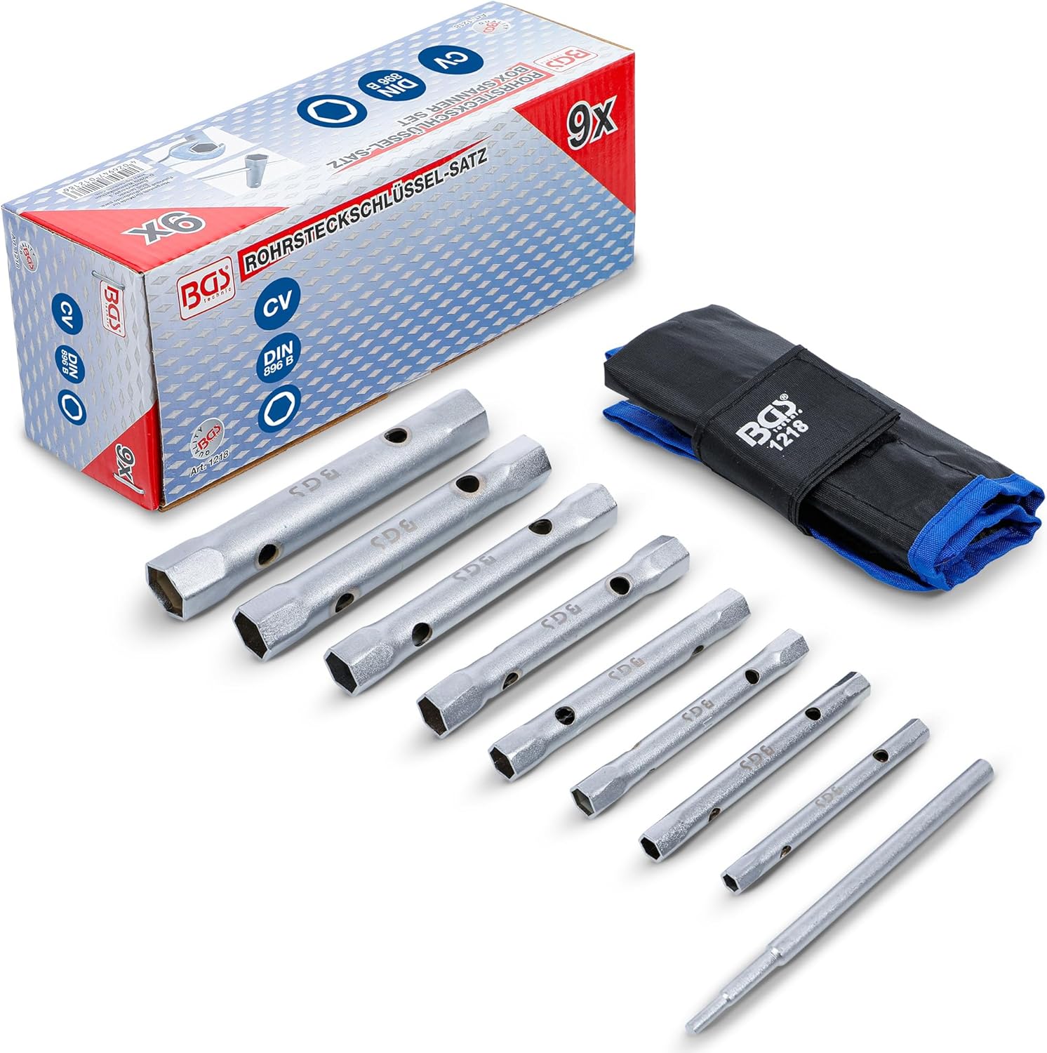 BGS 1218 | Rohrsteckschlüssel-Satz | 9-tlg. | SW 6 x 7 - 20 x 22 mm | metrisch | inkl. Tetron-Rolltasche BGS 1218 | Rohrsteckschlüssel-Satz | 9-tlg. | SW 6 x 7 - 20 x 22 mm | metrisch | inkl. Tetron-Rolltasche