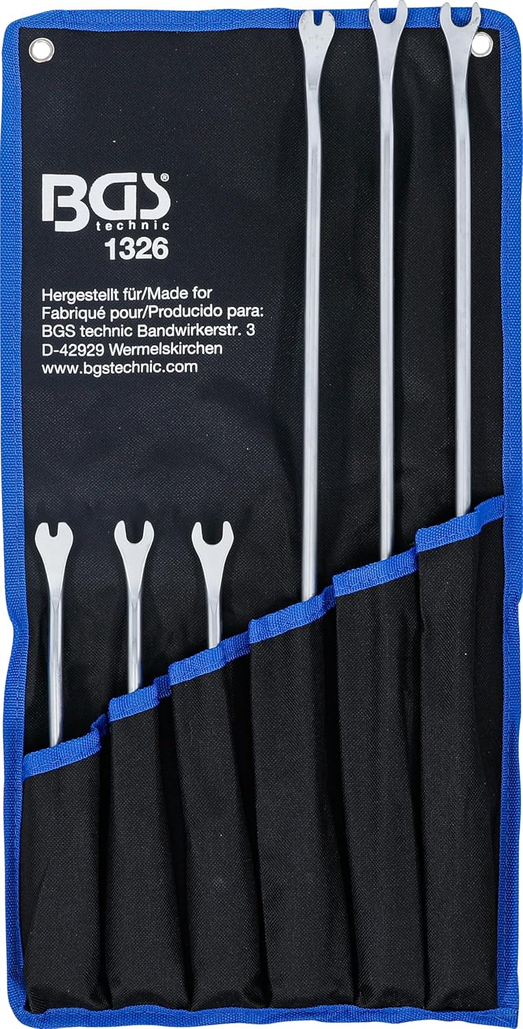 Das Set von der Marke BGS wurde speziell für die schnelle und leichte Demontage von Innenverkleidungen entwickelt. Es ermöglicht ein professionelles Arbeiten, ohne die empfindlichen Clips oder die umliegenden Oberflächen im Fahrzeuginnenraum zu beschädigen.