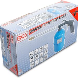 Bei der BGS 3204 Druckluft-Sprühpist liegt der Fokus auf einfacher Funktionalität. Das Saugbecher-Prinzip arbeitet zuverlässig mit Werkstattdruckluft. Mit einem Volumen von 1000 cm³ stellt dieses Werkzeug sicher, dass du nicht bei jedem kleinen Reinigungsschritt zur Spraydose greifen musst, sondern im Systembetrieb bleibst. Das spart nicht nur Zeit, sondern schont auch das Budget, da Gebinde-Ware deutlich günstiger eingekauft werden kann als Einzelsprühdosen.