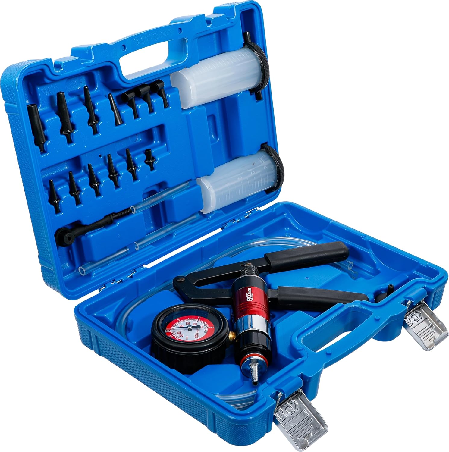 Der BGS 8038 Vakuum-Druckpumpen-Satz ist das ideale Diagnosewerkzeug für Kfz-Mechaniker und ambitionierte Hobbyschrauber, die präzise an Unterdruck- und Drucksystemen arbeiten. Mit diesem Kit lassen sich Ladedruck, Sensoren und Bremsanlagen effizient prüfen und entlüften. Das Set bietet Profis und Werkstätten eine kompakte Lösung für schnelle Fehleranalysen direkt am Fahrzeug.