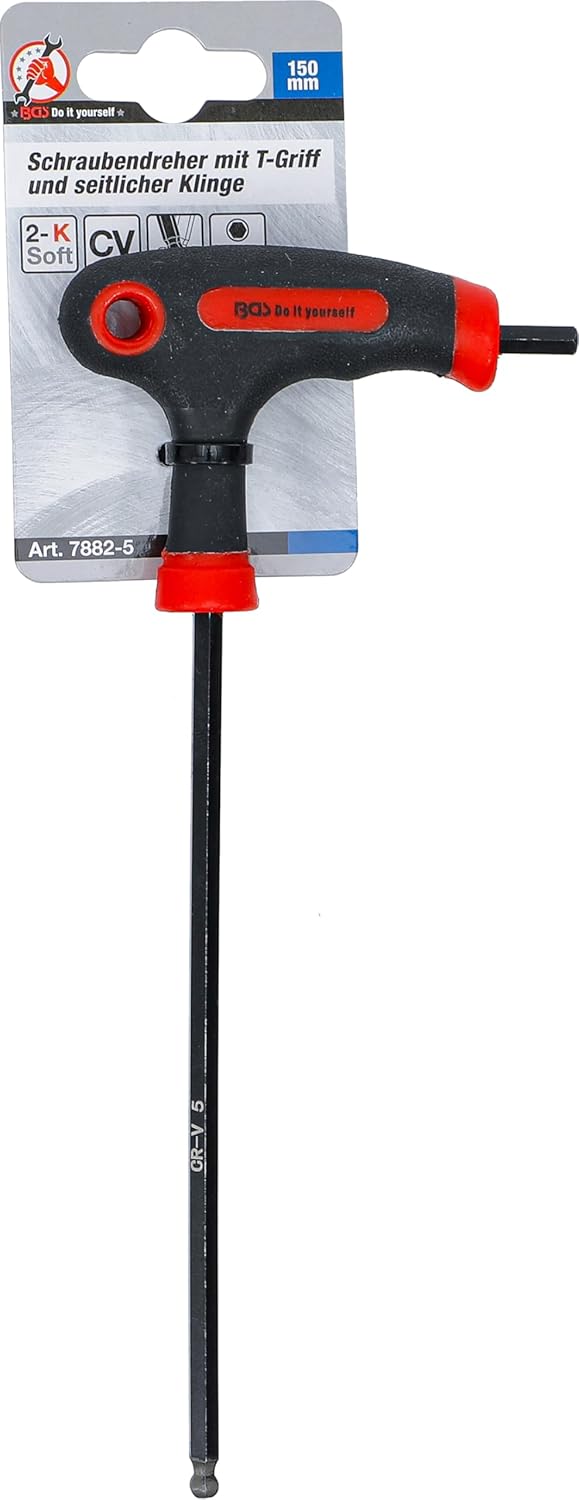 BGS Diy 7882-5 | Schraubendreher mit T-Griff und seitlicher Klinge | Innensechskant / Innensechskant mit Kugelkopf 5 mm