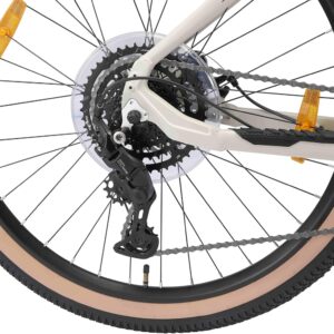 Das Modell ist mit einer modernen Shimano CUES 9-Gang-Schaltung sowie einer Shimano 11–45T Kassette ausgestattet. Diese Kombination bietet eine große Übersetzungsbandbreite, die effizientes Fahren auf verschiedenem Untergrund – von Asphalt über Schotter bis hin zu anspruchsvollem Gelände – ermöglicht.