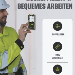 - Präzise Ergebnisse: Die Messgenauigkeit von 2 mm sorgt dafür, dass deine Zuschnittpläne und Materialbestellungen exakt aufgehen.