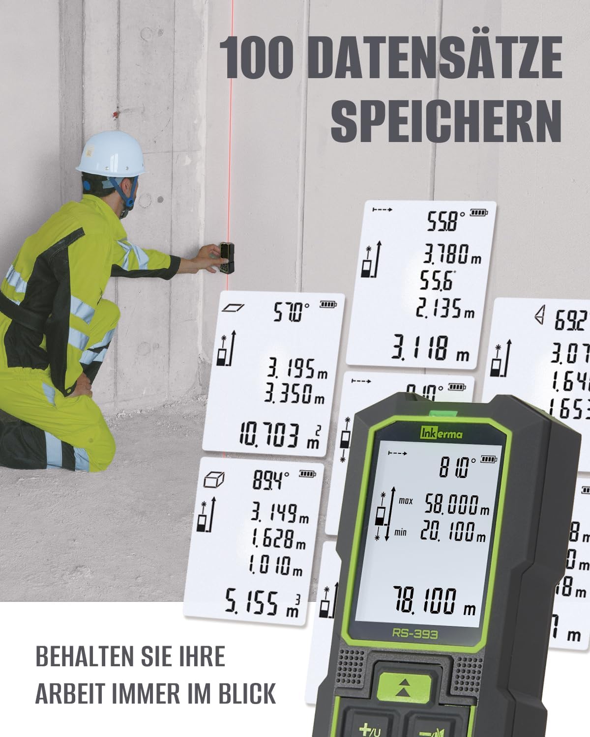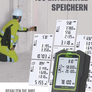 - Hohe Reichweite: Mit einer Messdistanz bis zu 120 Metern deckst du sowohl Innenräume als auch Hallen oder Außenbereiche mühelos ab.