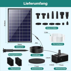 - Einfache Installation: Schwimmende Plattform und 3 Meter Kabel für flexible Platzierung im Teich, inklusive Filter und Montagezubehör für sofortigen Betrieb ohne Vorkenntnisse. Innerhalb weniger Minuten ist Ihre persönliche Wasserlandschaft einsatzbereit
