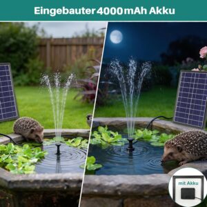 - Leistungsstarker Akku: Mit 4000mAh Hochleistungsakku für bis zu 3-6 Stunden Betrieb auch bei bewölktem Wetter, ideal für durchgehendes Plätschern im Gartenteich oder Springbrunnen ohne Stromansschluss
