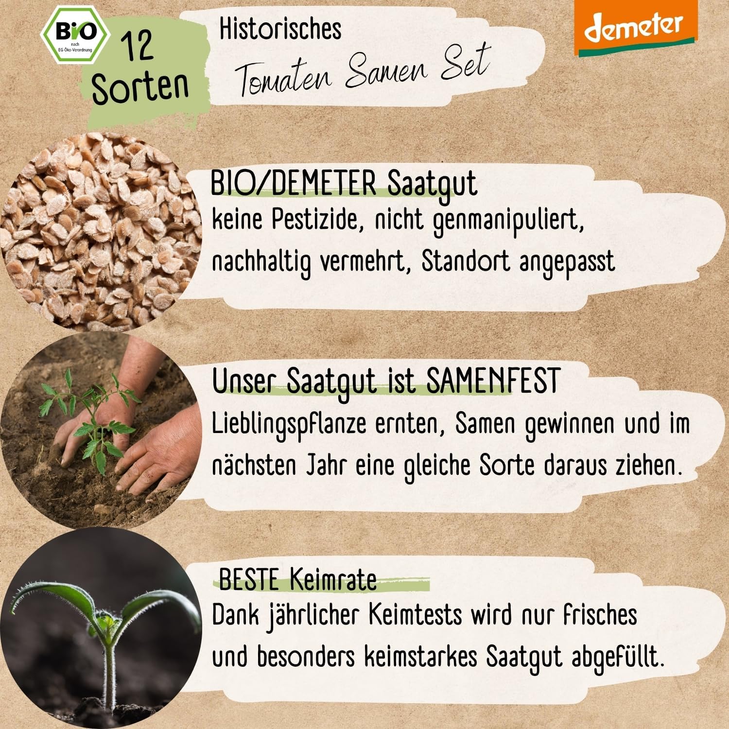 - Demeter-Qualität: Strengste ökologische Standards garantieren saatgut, das ohne synthetische Pestizide oder Kunstdünger produziert wurde.