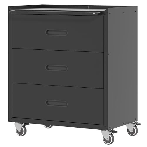 BIZOEIRON Werkzeugschrank, Metallschrank mit Rädern, Garagenschrank mit 3 Schubladen, Rollender Werkstattschrank, Montage Erforderlich, SchwarzBIZOEIRON Werkzeugschrank, Metallschrank mit Rädern, Garagenschrank mit 3 Schubladen, Rollender Werkstattschrank, Montage Erforderlich, Schwarz