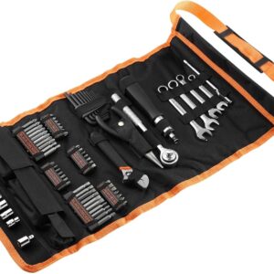 - Alles an einem Ort: Die Rolltasche hält alle 77 Teile sortiert und griffbereit, anstatt dass Bits und Schraubendreher lose im Handschuhfach herumfliegen.