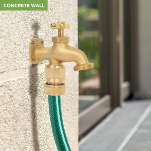 Der Messing-Wasserhahn wird mithilfe der im Lieferumfang enthaltenen Schrauben und Wanddübel sicher an der Wand montiert. Durch dieses mitgelieferte Befestigungsset ist eine stabile Installation an verschiedenen Untergründen in Stall oder Garage schnell möglich.