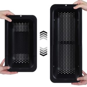 BLUE GINKGO Siebkorb über der Spüle – Gemüse und Obst waschen, gekochte Nudeln abtropfen lassen – ausziehbar – Küchenutensilien (20 B x 37~49 L x 7 H) cm – Schwarz