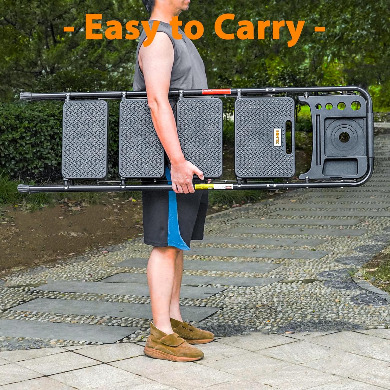 - Integriertes Ablagesystem: Die praktische Werkzeugablage hält Hammer, Wasserwaage oder Farbeimer griffbereit, was lästiges Auf- und Absteigen erspart.