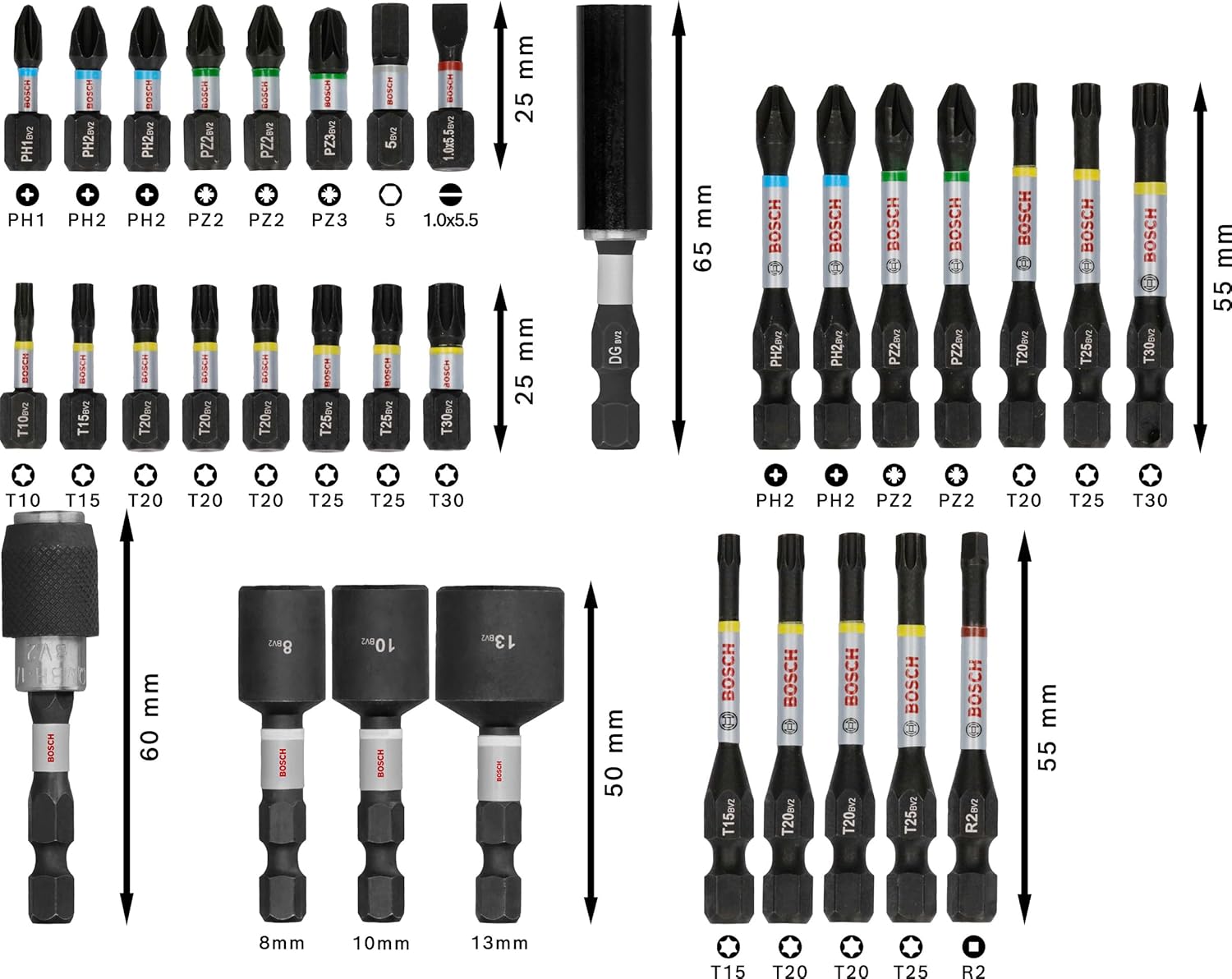 Das Bosch 33x PRO Impact Set richtet sich an Profis und ambitionierte Heimwerker, die ihre Schlagschrauber oder Bohrschrauber täglich unter hoher Last einsetzen. Es bietet eine exzellente Auswahl an Bits, die speziell für harte Schraubfälle und den rauen Baustellenalltag konzipiert wurden.