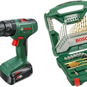 Bosch Akku Schlagbohrschrauber EasyImpact 18V-38 (1x Akku 2,5 Ah; 18 Volt System; im Koffer) + Bosch Accessories Bosch 70tlg. X-Line Titanium Bohrer und Schrauber Set (Holz, Stein und Metall, Zubehör Bohrmaschine)
