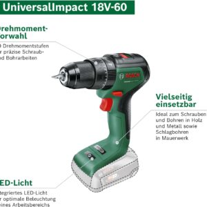 Bosch Akku Schlagbohrschrauber UniversalImpact 18V-60 (2 Akku, 18 Volt System, im Koffer) –