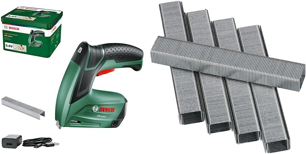 Bosch Akku Tacker PTK 3,6 LI (Integrierter Akku, 3,6 Volt, 30 Schläge/min, in Metalldose)Bosch Akku Tacker PTK 3,6 LI Dieser leichte Akku-Tacker mit Lithium-Ionen-Technologie ist ideal für Anwendungen sowohl im Haus als auch im Freien. Die Ladezustandsanzeige verhindert Ladeverzögerungen. Das Push + Release System der Tackerpistole ermöglicht kontrolliertes Arbeiten durch einfaches Drücken der Tackernase auf das Werkstück und Betätigen des Schalters. So wird die Gefahr einer Selbstauslösung verm