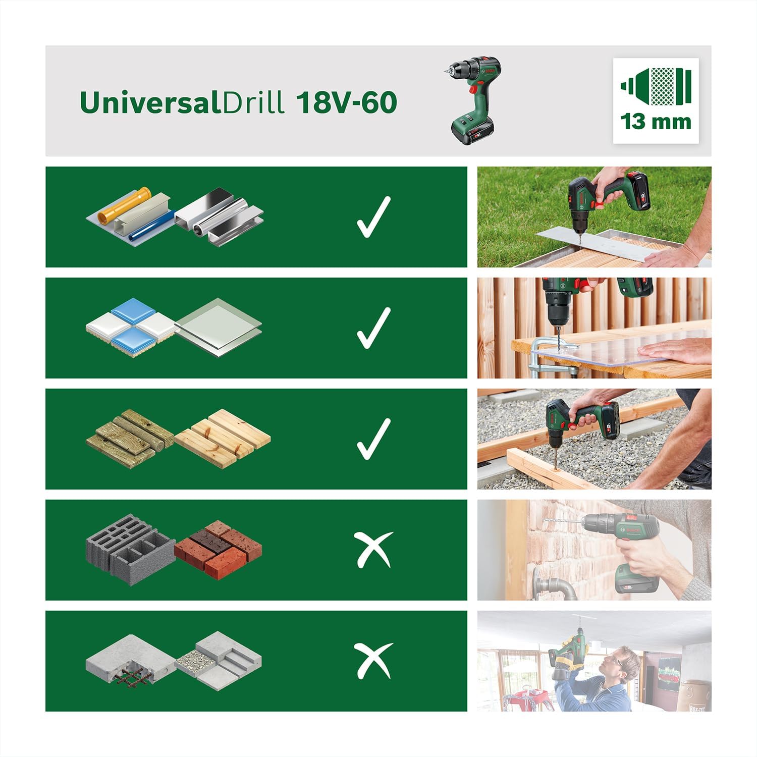 Empfohlene Nutzung für das Produkt Bosch Akkuschrauber UniversalDrill 18V-60