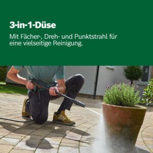 - Mehr Reinigungsleistung dank 3-in-1-Düse: Sie vereint Fächerstrahl, Rotationsstrahl und Punktstrahl