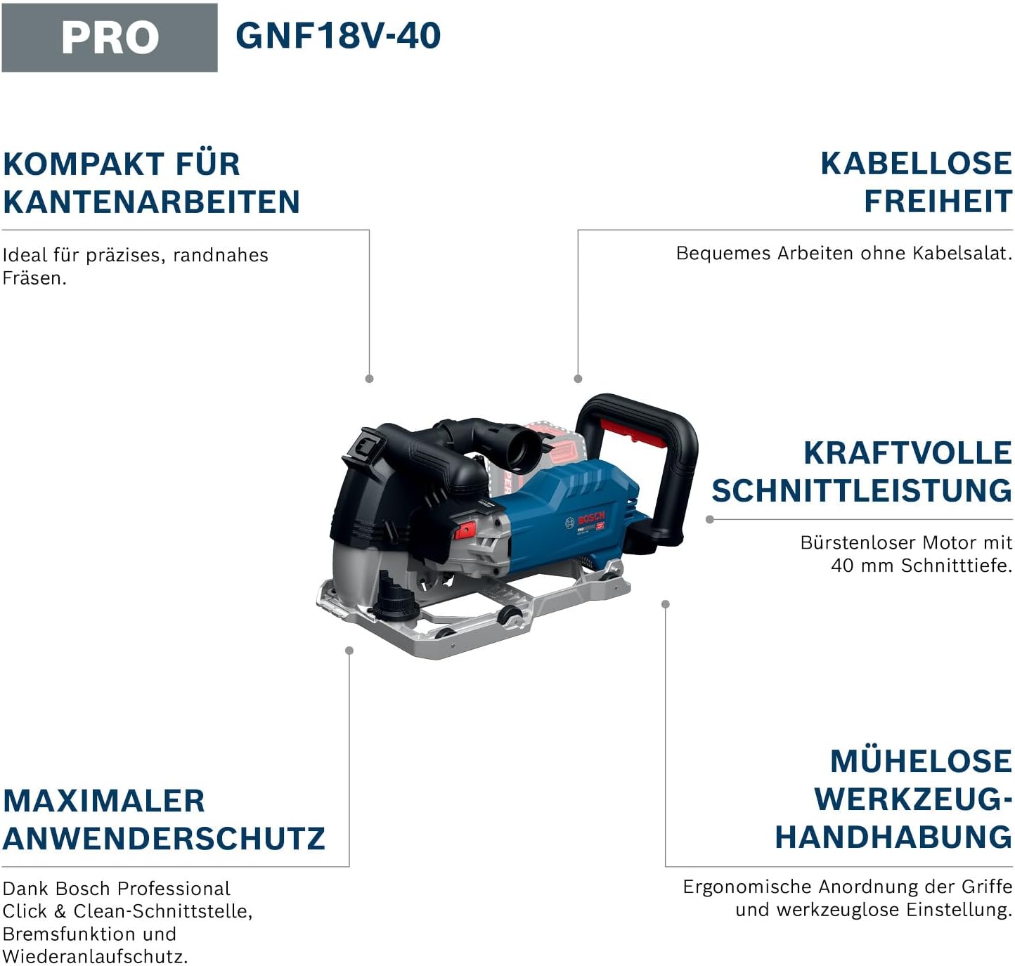 Technische Eigenschaften für das Produkt Bosch PRO 18V System Akku-Mauernutfräse GNF18V-40