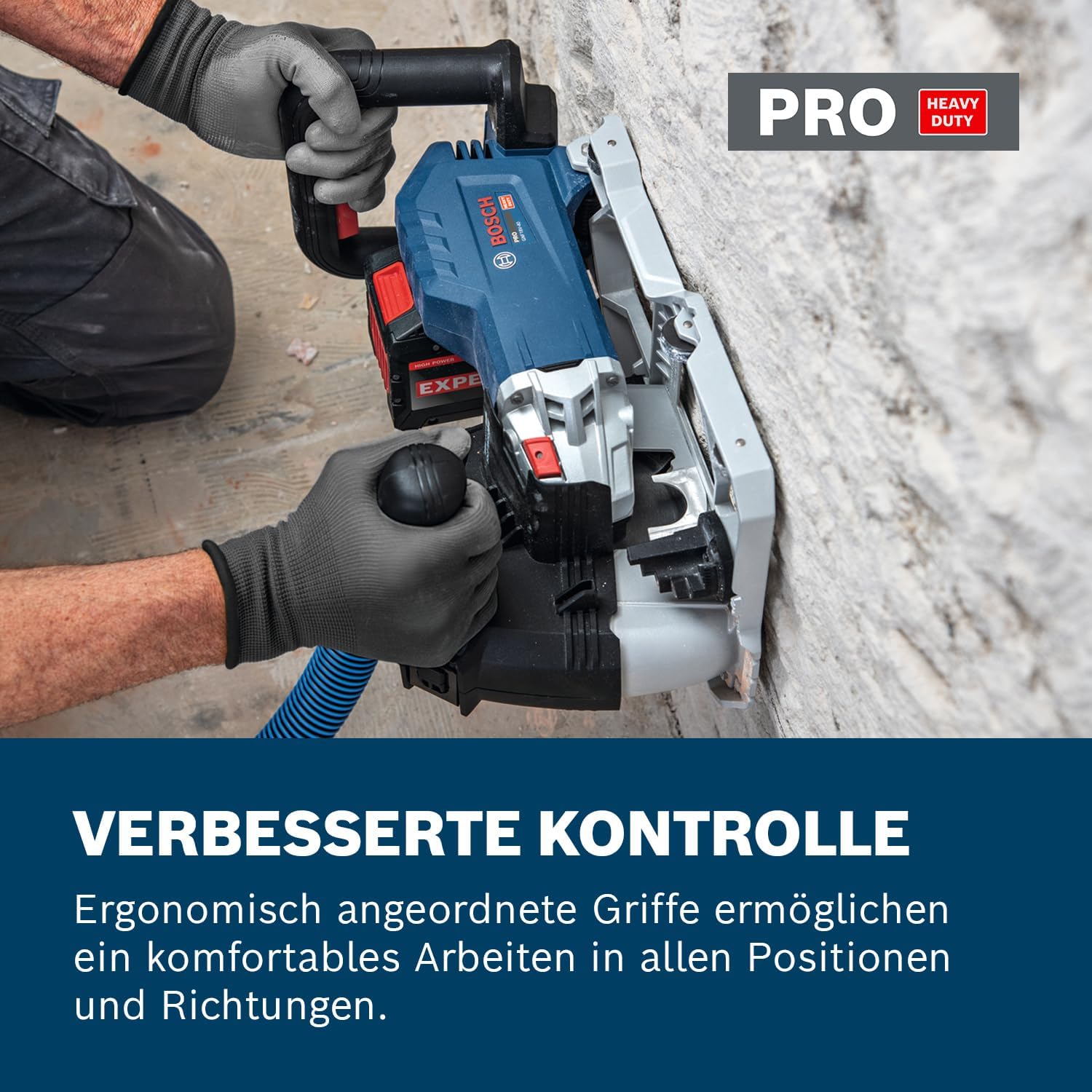Wer einmal auf einer Baustelle ohne festen Stromanschluss mit einer kabelgebundenen Fräse hantiert hat, weiß, warum das hier ein Gamechanger ist. Die Bosch GNF18V-40 fühlt sich in der Hand sofort intuitiv an. In der Praxis zeigt sich, dass die Gewichtsverteilung trotz der 150mm Scheiben sehr gut ausbalanciert ist. Man arbeitet ermüdungsfreier, weil man nicht ständig gegen das schwere Kabel ankämpft, das sich sonst immer in den Füßen verheddert.