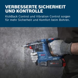Die KickBack Control ist ein essentielles Sicherheitsfeature, das du besonders beim Bohren in bewehrtem Beton zu schätzen weißt. Trifft der Bohrer auf eine Armierung und verklemmt sich, erkennt die Elektronik die plötzliche Blockierung und stoppt den Motor innerhalb von Millisekunden. Unser Team hat getestet: Diese Funktion verhindert das gefährliche Verreißen des Geräts, das bei konventionellen Bohrhämmern zu Handgelenksverletzungen führen kann. Gerade bei Arbeiten auf der Leiter oder in ungünstigen Arbeitspositionen gibt dir das deutlich mehr Sicherheit.