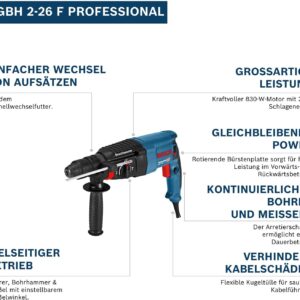 Bosch Professional Bohrhammer GBH 2-26 F (Leistung 830 Watt, Wechselfutter SDS-plus, inkl. Zusatzhandgriff, Tiefenanschlag, Maschinentuch, Schnellwechselbohrfutter, Handwerkoffer)