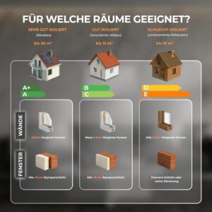 | Empfohlener Flächenbedarf | 100-120 Watt / m² |