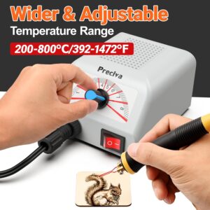 - Präzise Hitze-Kontrolle: Ein dedizierter Drehregler erlaubt die Anpassung zwischen 200 °C und 800 °C, um unterschiedliche Materialdichten von weichem Balsaholz bis hin zu festem Leder perfekt zu bearbeiten.
