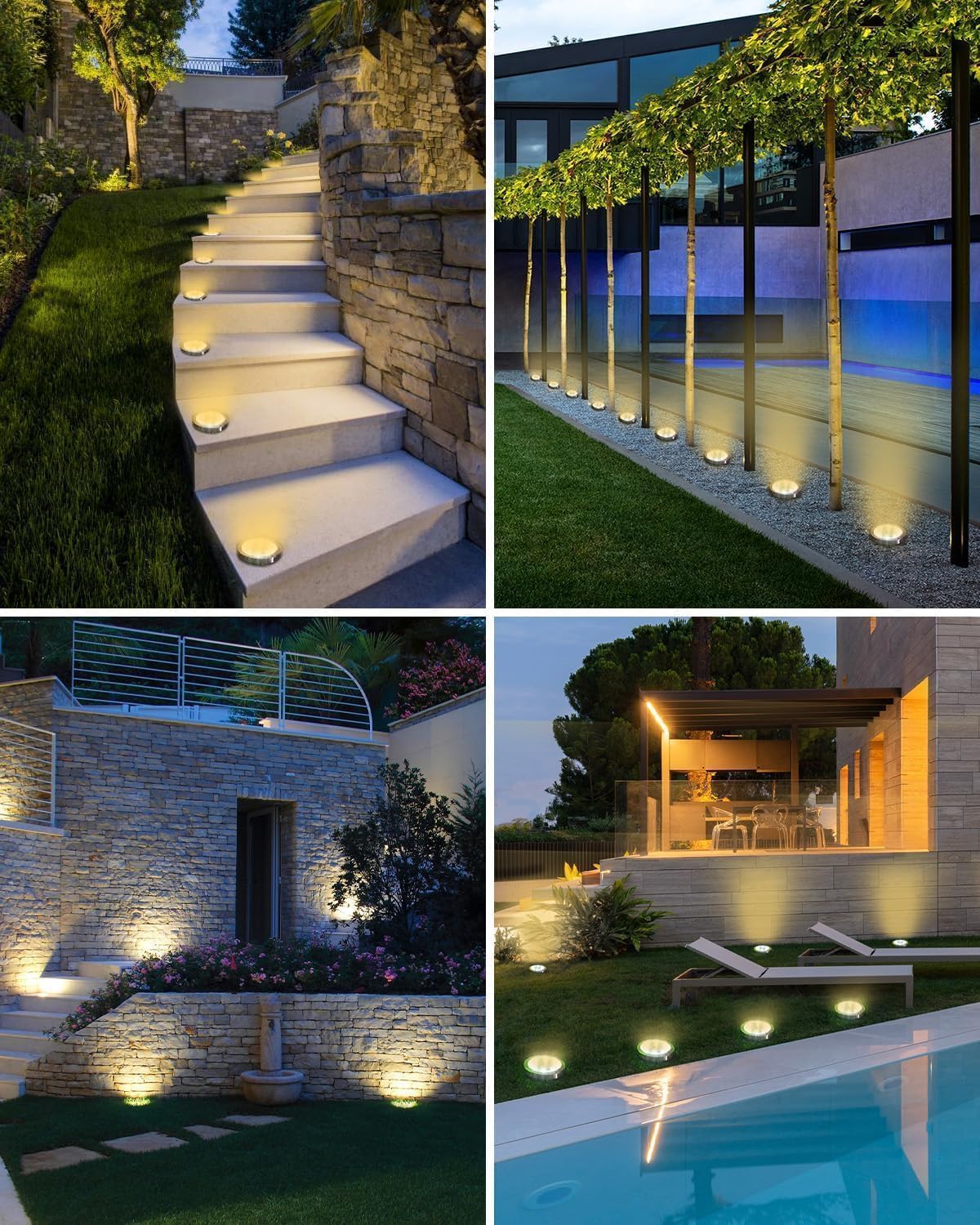 Mehrere Käufer nutzen das Set zur Markierung von Treppenstufen oder als Wegebeleuchtung entlang der Einfahrt und berichten, dass die Helligkeit für Orientierung ausreichend ist. Die warmweiße Lichtfarbe wird als angenehm und nicht zu grell beschrieben. Einige Kunden haben das Set erweitert und mehrere Packungen kombiniert, um größere Bereiche auszuleuchten – die einheitliche Optik macht dies problemlos möglich.