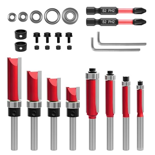 Bündigfräser 10 Stück, 8mm, Bündigfräser Kugellager Oben, B35 mm Scharnier Bohrschablone, verdeckte Scharnierlehre, Türschrank-Scharnierlehre