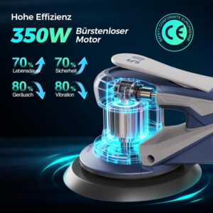 Bürstenloser Exzenterschleifer mit 125mm/150mm Schleifteller, 350W Schleifmaschine für Holz mit 20 Schleifpapier, 7-Stufiger Drehzahlregelung bis 10.000 U/min, Tragkoffer