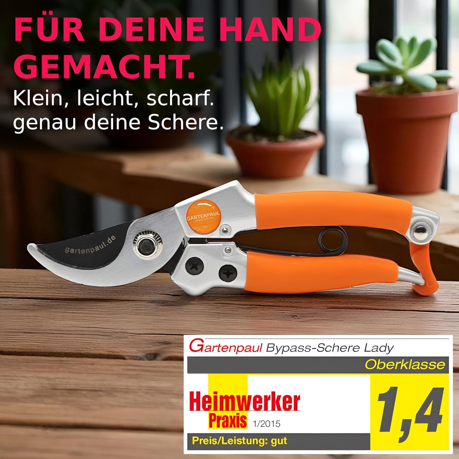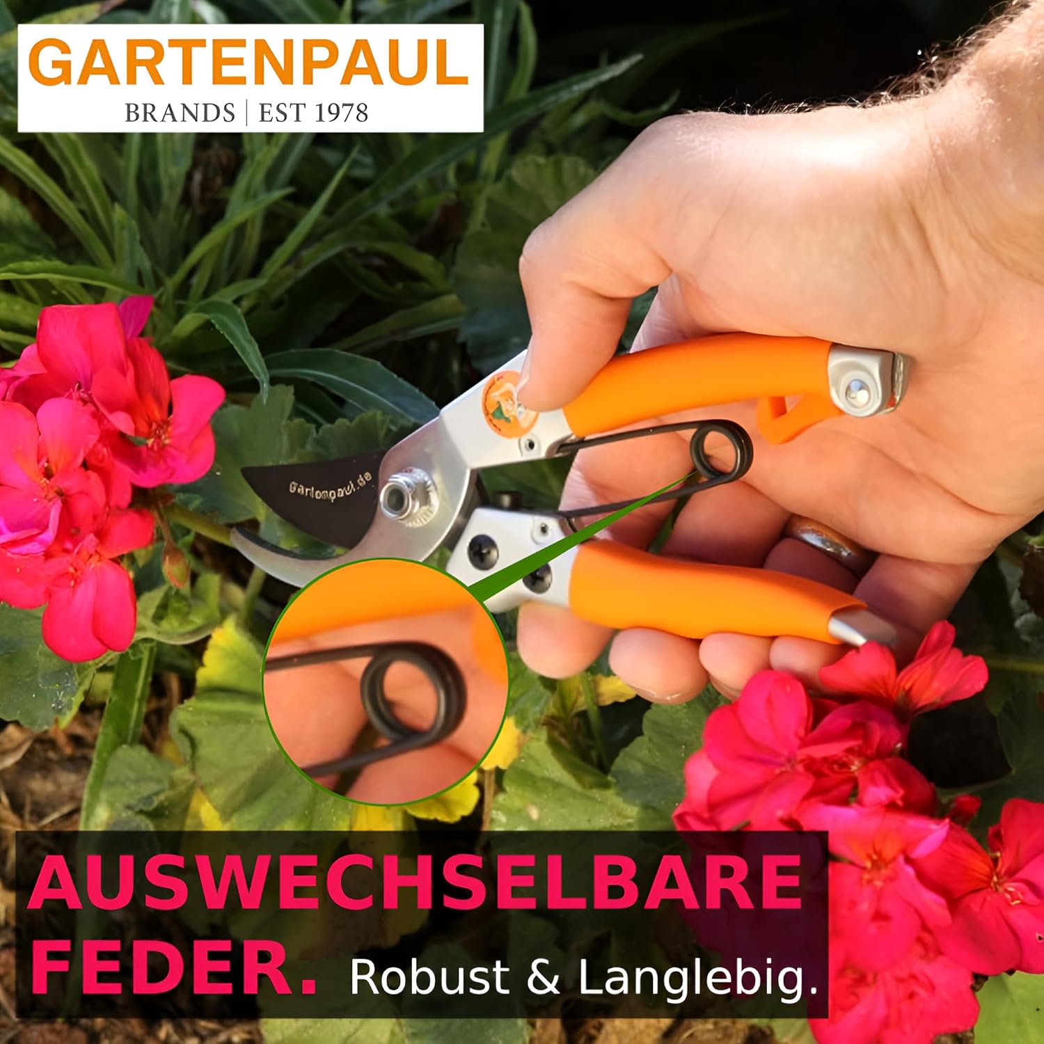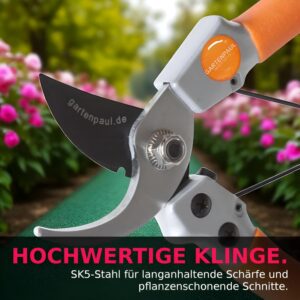 • ✅ PRÄZISE: Mit scharfen Bypass-Klingen aus SK5-Stahl schneidet die GARTENPAUL Damengartenschere sauber und pflanzenschonend. Ideal für Obst- und Zierpflanzenschnitt ohne Quetschen, perfekt für Rosen, Stauden, Reben und Blumen.