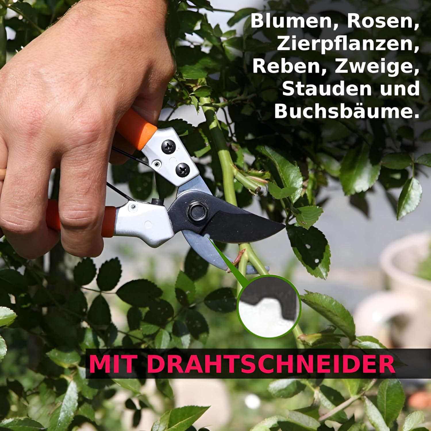• ✅ VIELSEITIG: Integrierter Drahtschneider für Floristik, Kreativ- und Bastelarbeiten. Perfekt als Rosenschere, Astschere, Pflanzenschere oder Trimmschere einsetzbar. Auch für Sträucher, Buchsbäume, Zweige und Kräuter hervorragend geeignet.