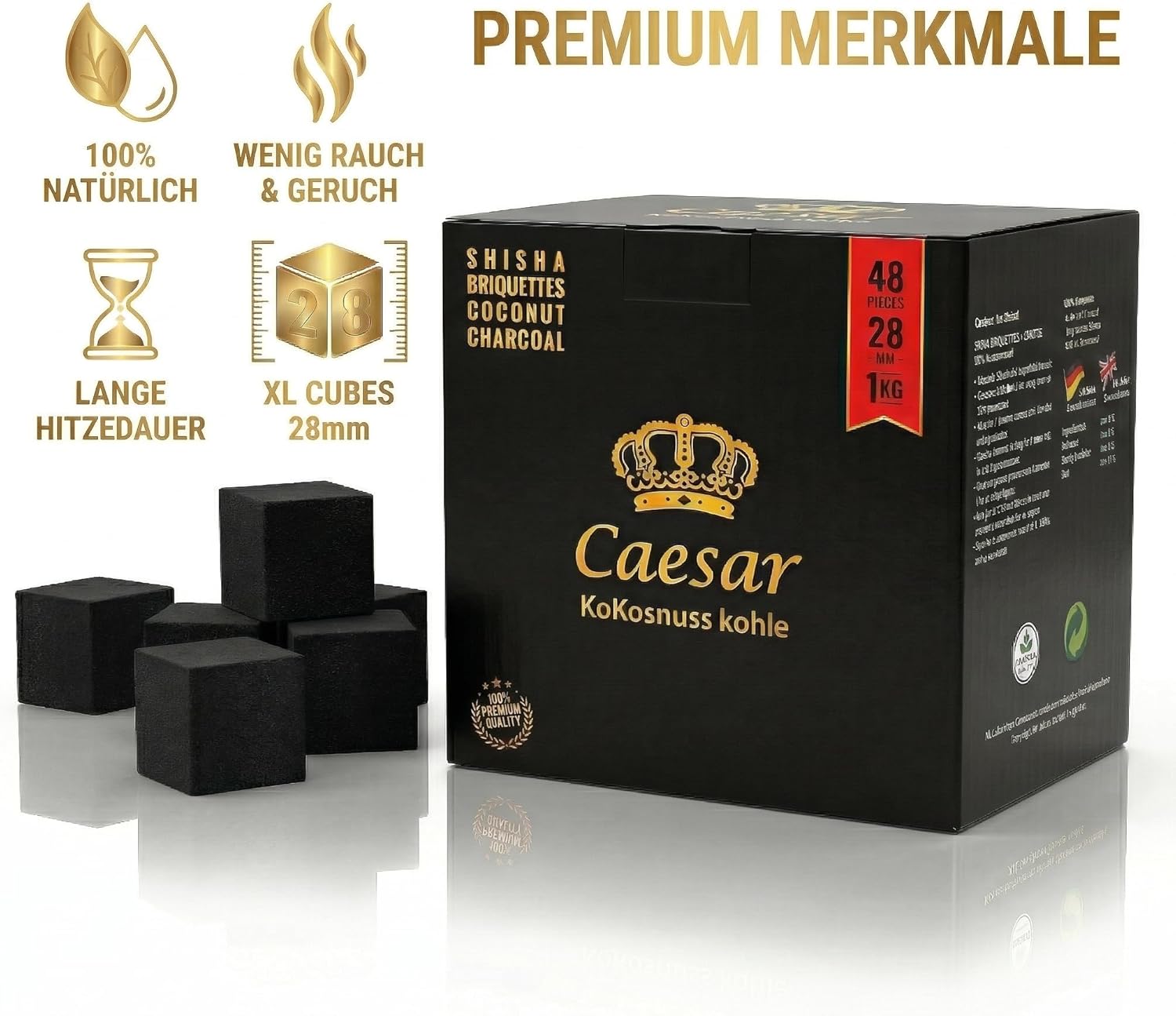Produktbeschreibung für Caesar Premium Shisha Kohle –