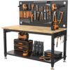 CAMMOO 122 x 61 cm verstellbare, robuste Werkbank, max. 907 kg Tragfähigkeit, Gummibaumholz-Arbeitstisch mit Lochwand, Steckdosen, Werkbank für Garage, Werkstatt, Büro, Zuhause, Gewerbe