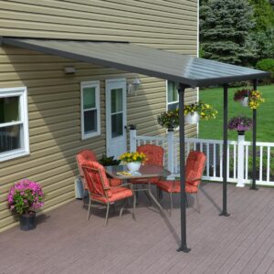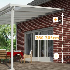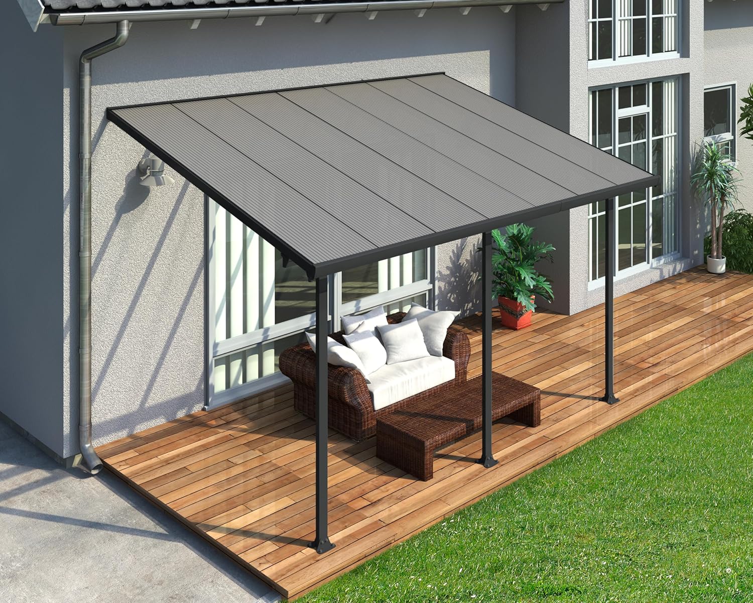 Die Canopia by Palram Terrassenüberdachung Feria ist die ideale Lösung für Hausbesitzer und ambitionierte Heimwerker, die ihre Terrasse wetterfest machen und den Wohnraum nach außen erweitern möchten. Mit einer Grundfläche von 425 x 300 cm bietet sie zuverlässigen Schutz vor Witterungseinflüssen, ohne den natürlichen Lichteinfall unnötig zu mindern.