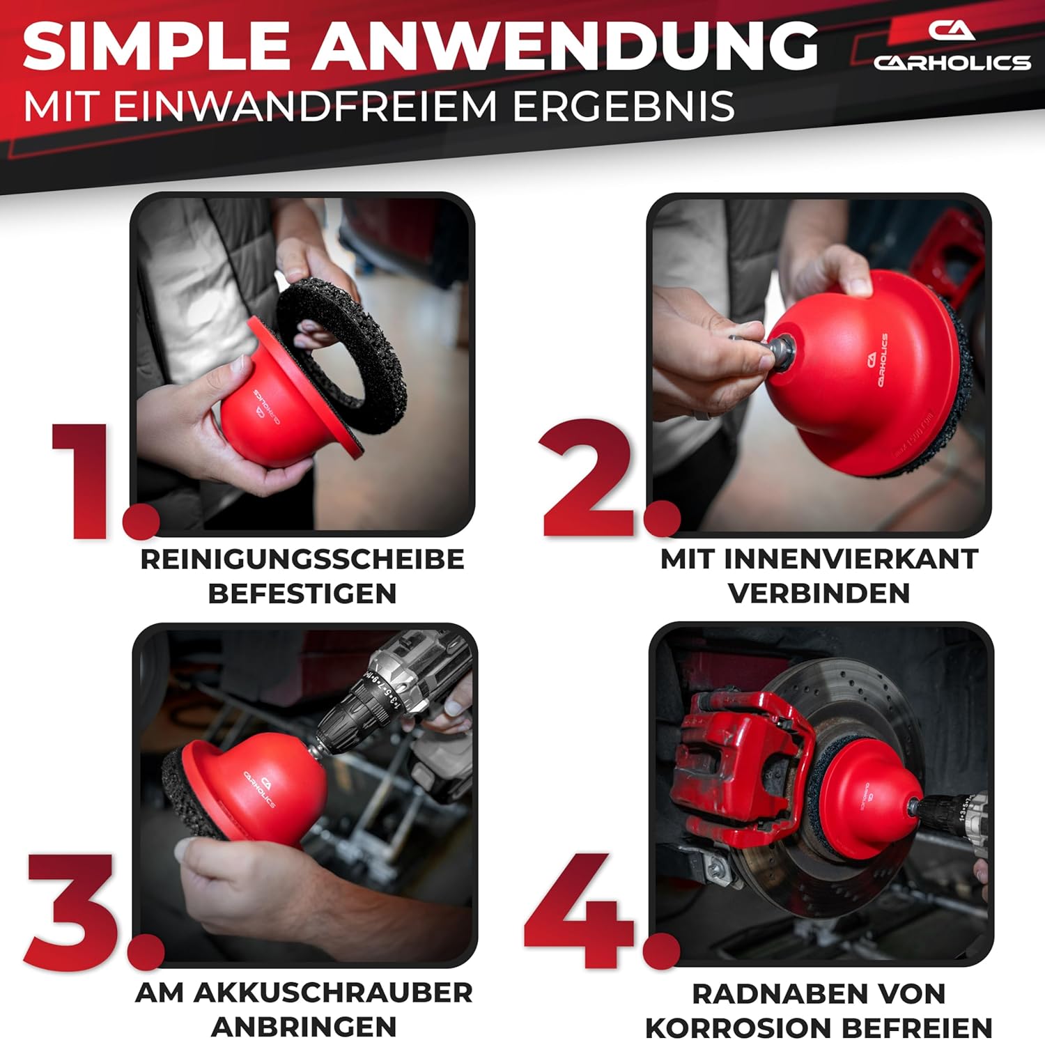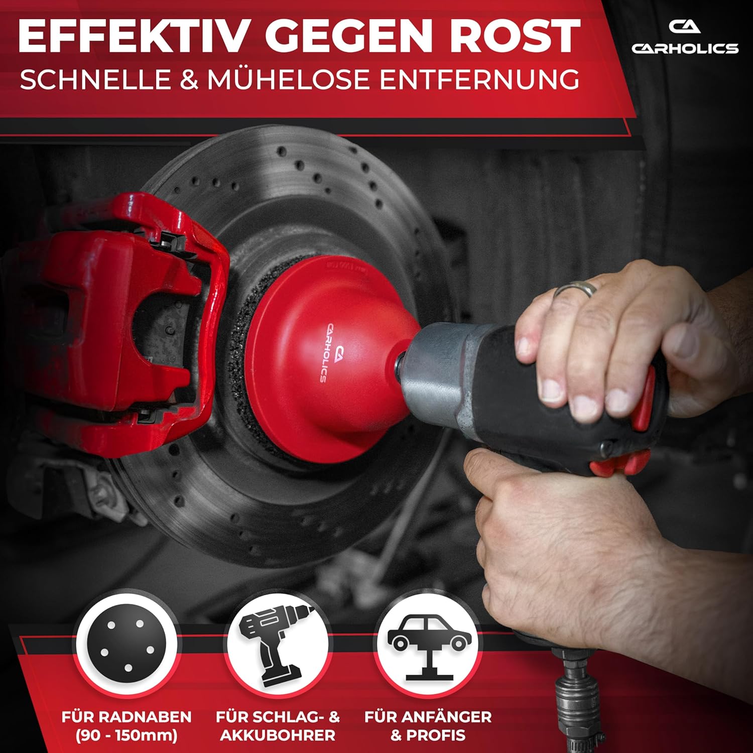 Der CARHOLICS Radnabenschleifer Auto ist das unverzichtbare Werkzeug für alle KFZ-Profis und ambitionierten Schrauber, die bei jedem Reifenwechsel Zeit sparen wollen. Er ermöglicht die mühelose und gründliche Entfernung von hartnäckigem Rost und Schmutz an Radnaben sowie Felgenflanschen. Ein ideales Hilfsmittel für Werkstätten und professionelle Reifendienste, um die Montagefläche perfekt vorzubereiten.