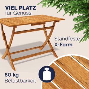 - Hohe Belastungsgrenzen: Dank konstruktiver Querverstrebungen tragen die Stühle jeweils bis zu 160kg und der Tisch bis zu 80kg, was eine überdurchschnittliche Stabilität im Vergleich zu Standard-Holzmöbeln bietet.