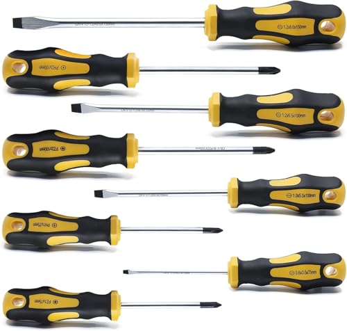 • Hohe Qualität dank Verwendung von hitzebehandeltem Chrome Vanadium Stahl. Das Kreuz- und Schlitz-Schraubendreherset ist langlebig und bestens geeignet für Werkstatt und Werkzeugkoffer.