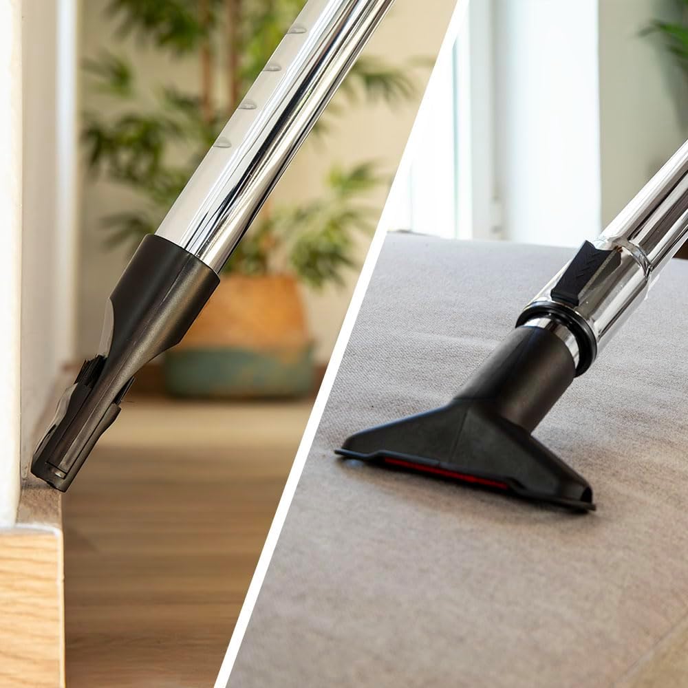 Aus unserer Erfahrung in der Werkstatt zeigt sich, dass das mitgelieferte Zubehör für Möbel und Ecken besonders bei der Reinigung von Maschinengehäusen und schwer erreichbaren Winkeln glänzt. Das Teleskop-Metallrohr bietet die nötige Robustheit für den harten Werkstattalltag und erlaubt eine ergonomische Arbeitshaltung. Die Bedienung ist bewusst reduziert gehalten: Ein Schalter für Ein/Aus, ein Klick-System für den Behälter – hier wird auf unnötige Spielereien verzichtet, die im Einsatz nur kaputtgehen könnten.